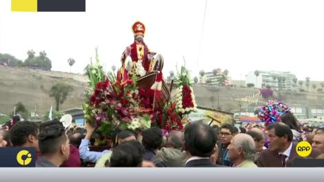 Integrantes de la asociación de pescadores artesanales de Chorrillos cargaron la imagen de 'San Pedrito' para que realice un tradicional paseo por el...