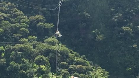 Cuatro personas quedaron dentro del vagón, que cuelga a unos 200 metros del piso. El Departamento Administrativo de Gestión de Riesgo de Desastres...