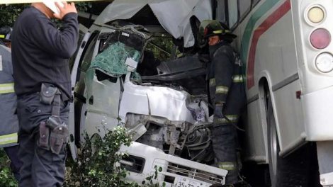 Acajuate— Ocho personas muertas, entre ellas cuatro mujeres, además de dos lesionadas dejó el choque frontal de dos unidades del transporte público...