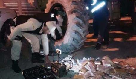 Casi 752 kilos de marihuana, valuados en más de 21 millones de pesos, que estaban ocultos en las ruedas gigantes de un tractor fueron secuestrados...