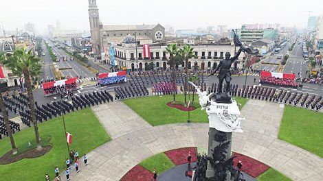 En la plaza Bolognesi del centro de Lima, el presidente Martín Vizcarra Cornejo y el ministro de Defensa, José Huerta Torres, participaron en la...