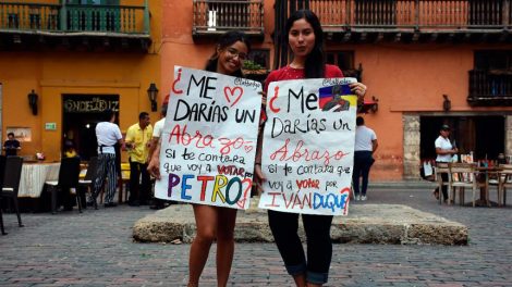 Con pancartas, los muchachos pedían un abrazo para los candidatos en contienda: Petro o Duque. Los cartageneros se acercaban para abrazar al...