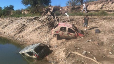 Se rompió un azud, bajó el nivel del agua y emergió un “cementerio de autos” que habrían sido robados. Aparecieron en Chacra de la Merced, entre la...