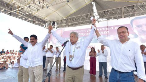 (apro).- La concentración es junto al malecón y, desde el templete, se divisa el mar. Lado a lado, Manuel Espino y Germán Martínez Cázares...