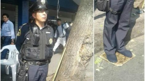 El policía que se muestra en la imagen declaró ante Asuntos Internos que se encontraba reparando su calzado, mismo que se había dañado en...
