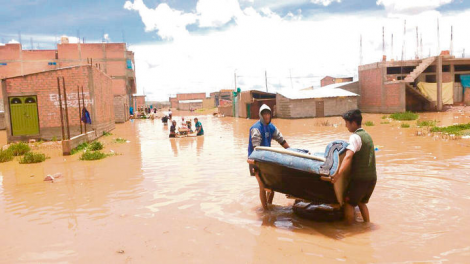Por el incremento de su cauce, el río Coata inundó un centenar de viviendas de la urbanización San Carlos, distrito de San Miguel, provincia San...